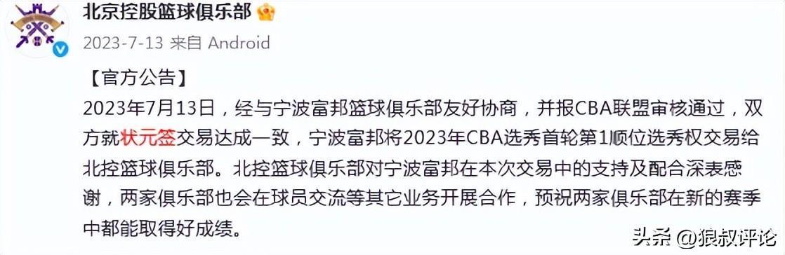 不过与宁波的谈判,广东并没有付出实质性的筹码下,北控送出了王俊杰,马泳得到状元签,也是毫无悬念拿下陈国豪。