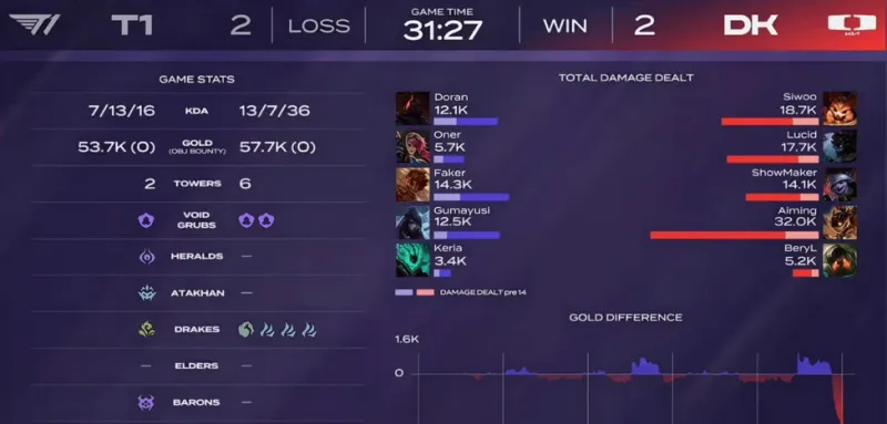 DK选用:Siwoo纳尔、Lucid大树、ShowMaker小炮、Aiming炸弹人、BeryL泰坦